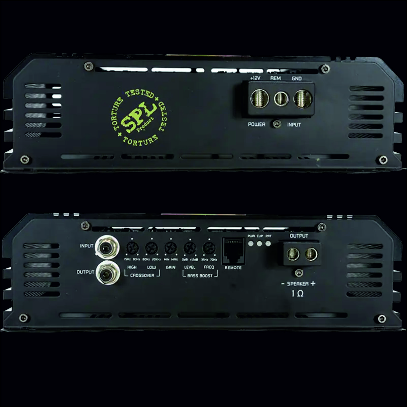 1-Kanal 1-Ohm stabiler Breitband SPL-Hochleistungsverstärker mit Class D Schaltung, integrierter Aktivweiche und Bass Boost