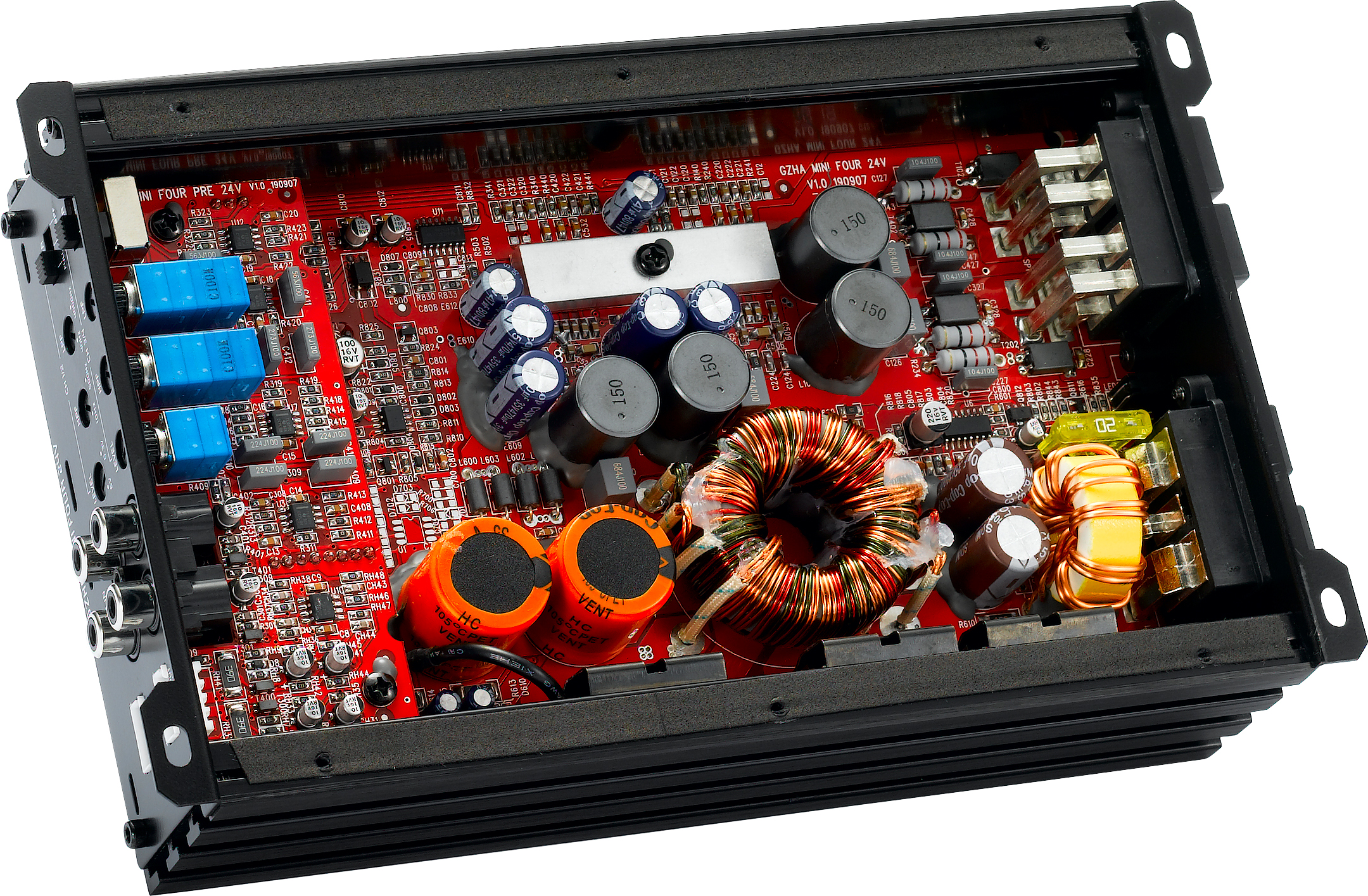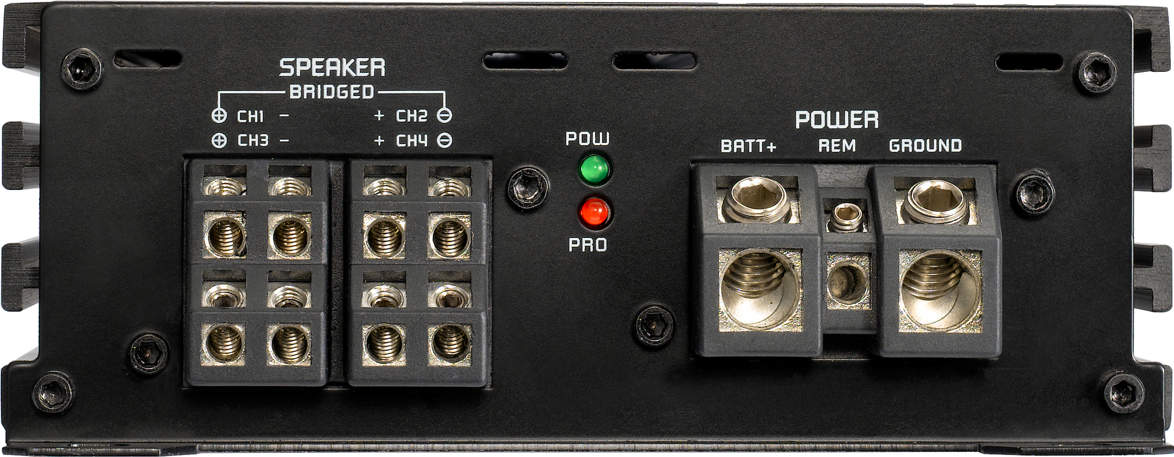 4-Kanal Verstärker mit hoch effizienter Class D Schaltung, integrierter Aktivweiche und kompakten Abmessungen für 24V Betrieb