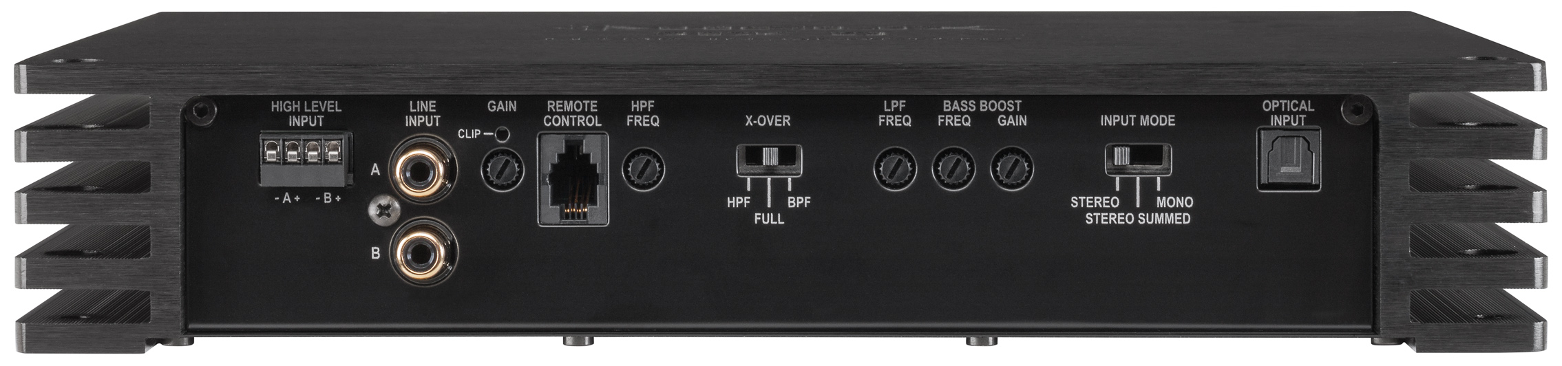 - Integrierte, aktive Frequenzweiche mit Hochpass, Tiefpass, Bandpass und konfigurierbarem Bass Boost