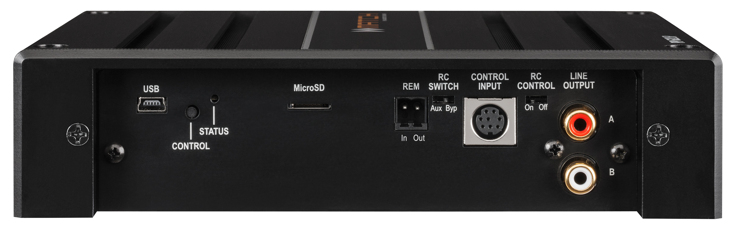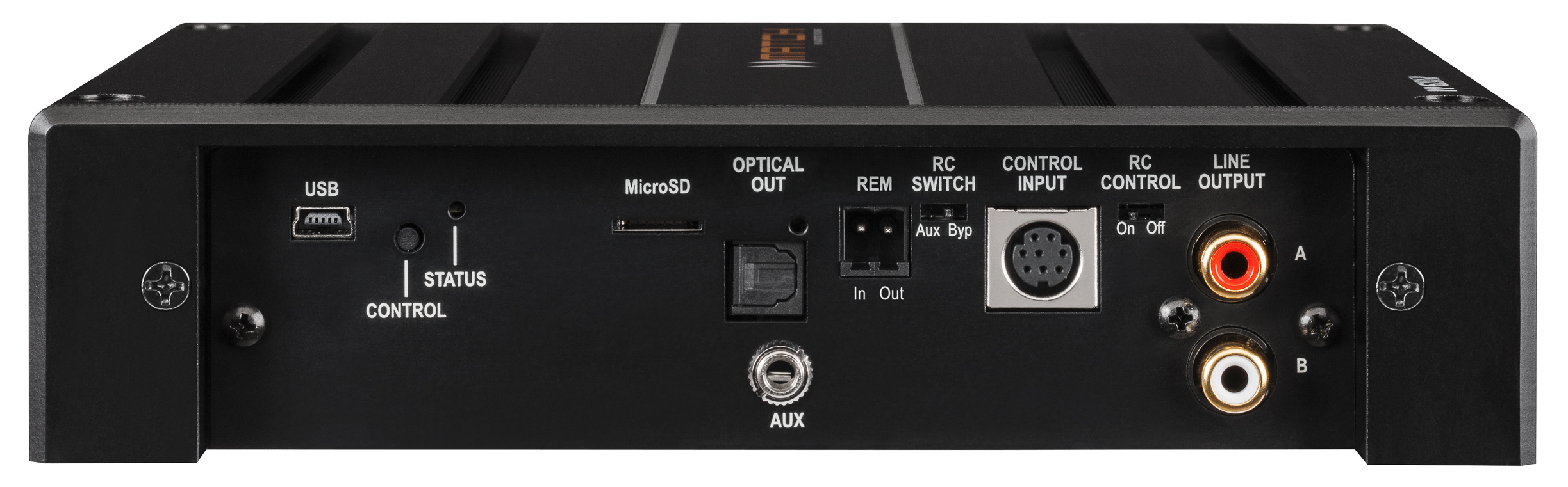 - Frei konfigurierbarer 2-Kanal PreOut für den Anschluss weiterer Verstärker